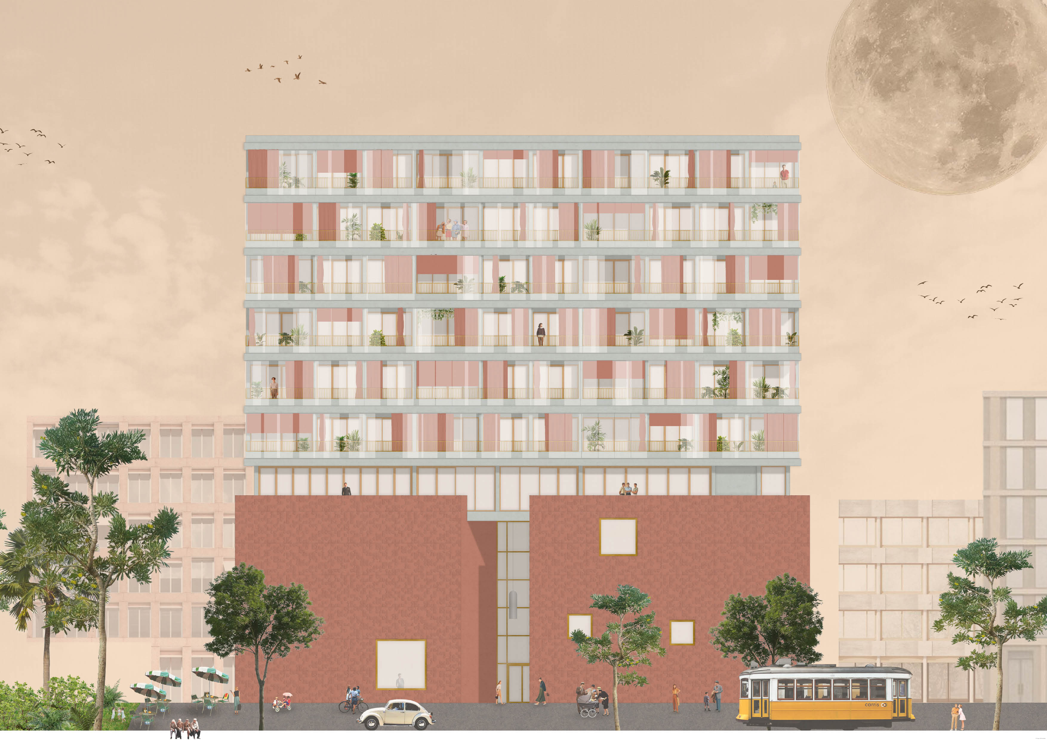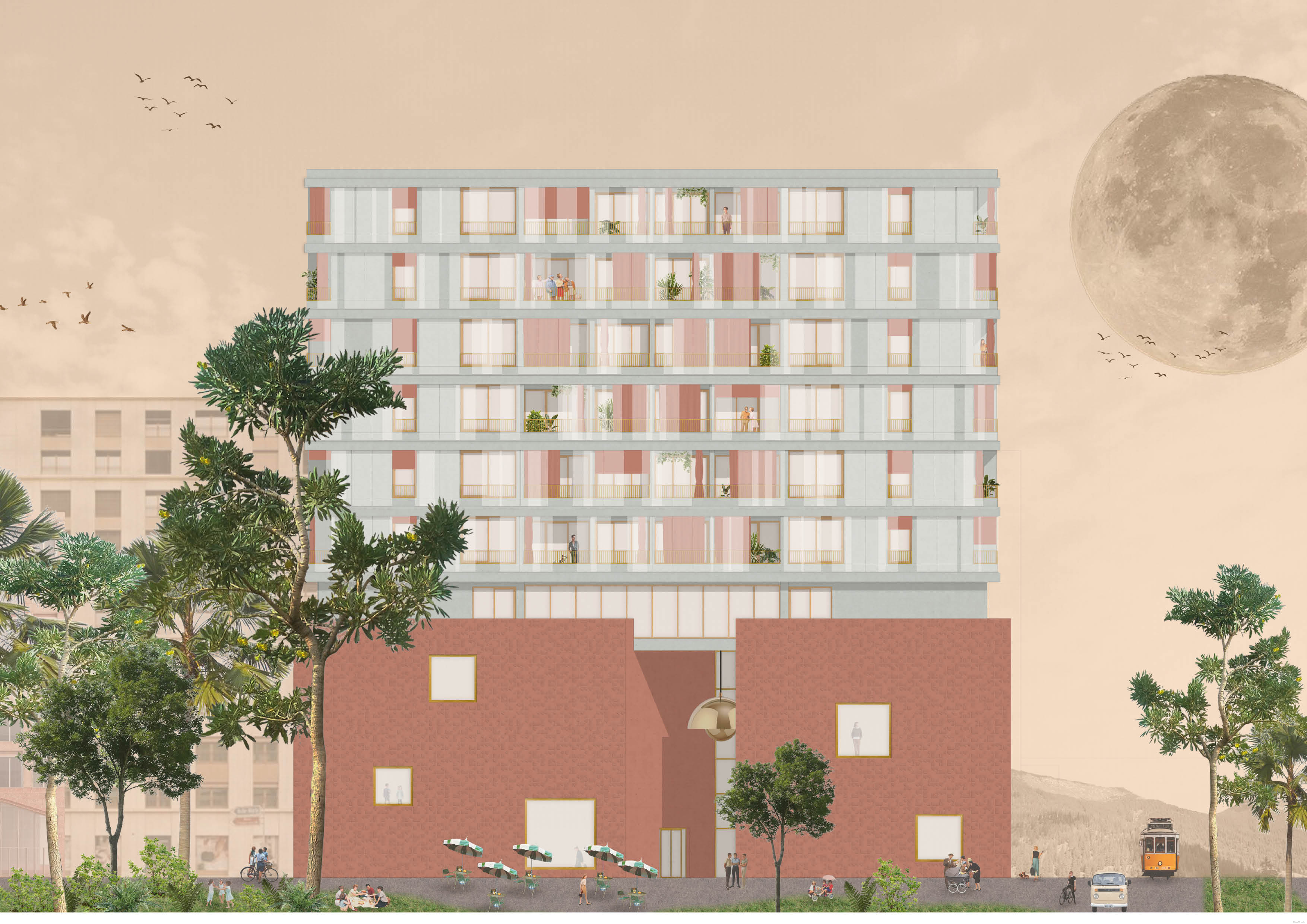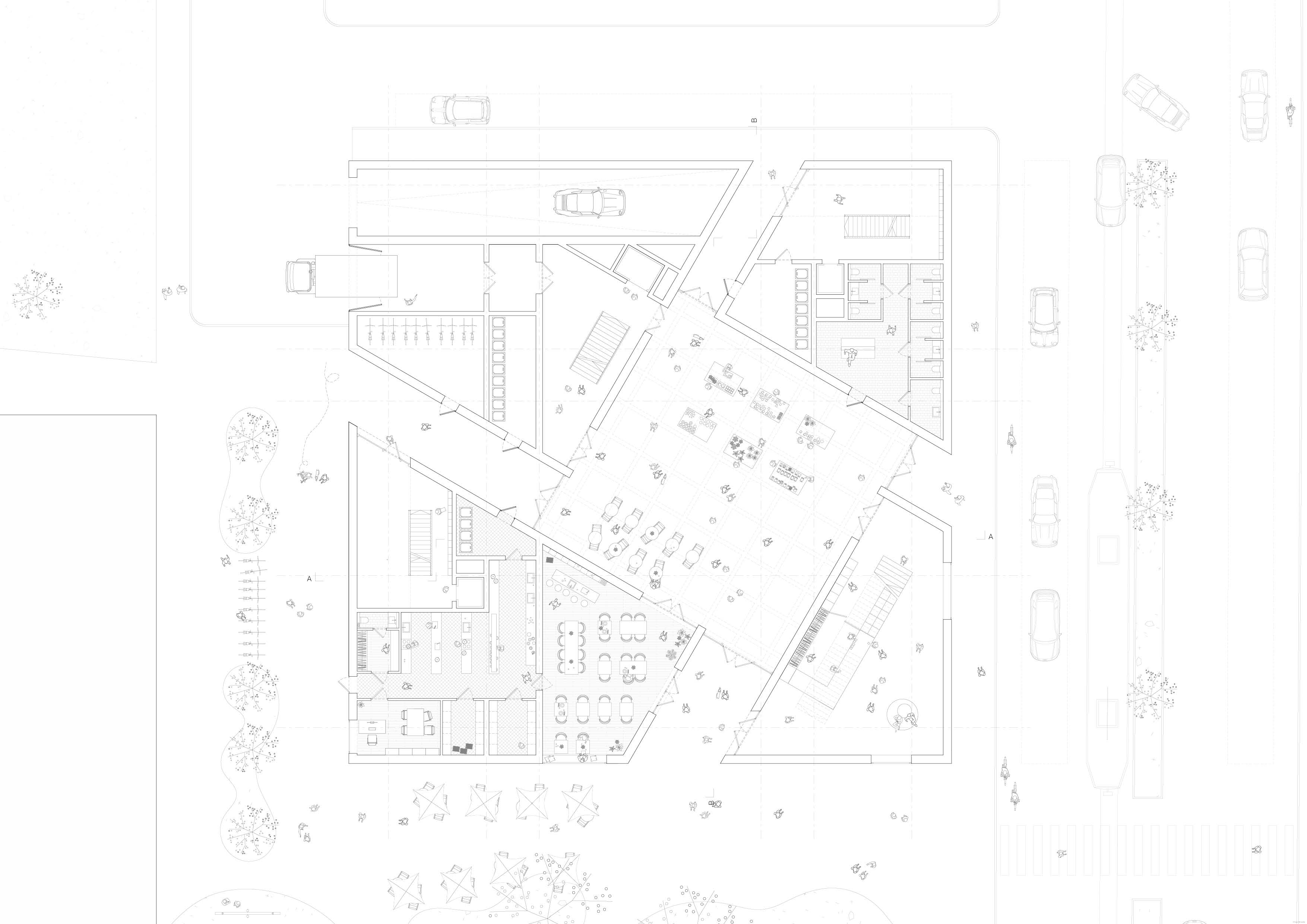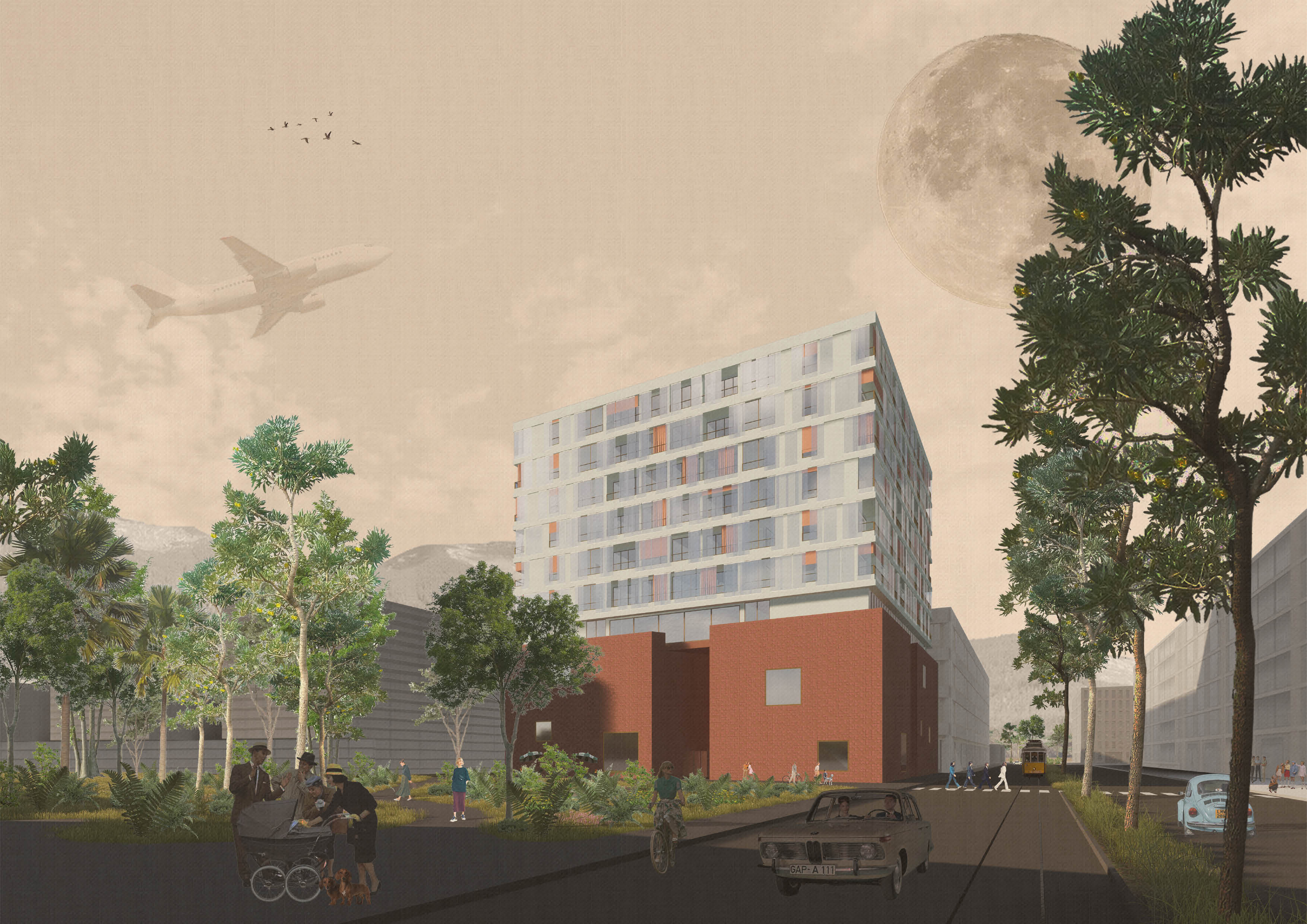 Dieser Entwurf zeigt die Auseinandersetzung mit sonder Bausteinen in der neu entstehenden SmartCity Graz. Der quadratische Bauplatz liegt direkt neben dem geplanten Park der sich in das Quartier schneidet. Durch diese dominante Lage, muss das Gebäude mehr sein als nur ein Archiv aber auch mehr als nur ein Wohnbau. Das Gebäude bildet ein kleines Zentrum, welches sich an den Park anschmiegt und diesen durch seine öffentliche Nutzung weiter bespielt. Die Sockelzone bildet mit vier Massiven Volumen ein festes Standbein für dass Gebäude und durch die Setzung zueinander ein sehr spannendes Raumkonglomerat. Durch diese Setzung entstehen eine klare Adressbildung für die sehr Unterschiedlichen Nutzungen und gleichzeitig entsteht ein öffentlicher Raum, der für das Quartier einen sozioökonomischen Mehrwert schafft.