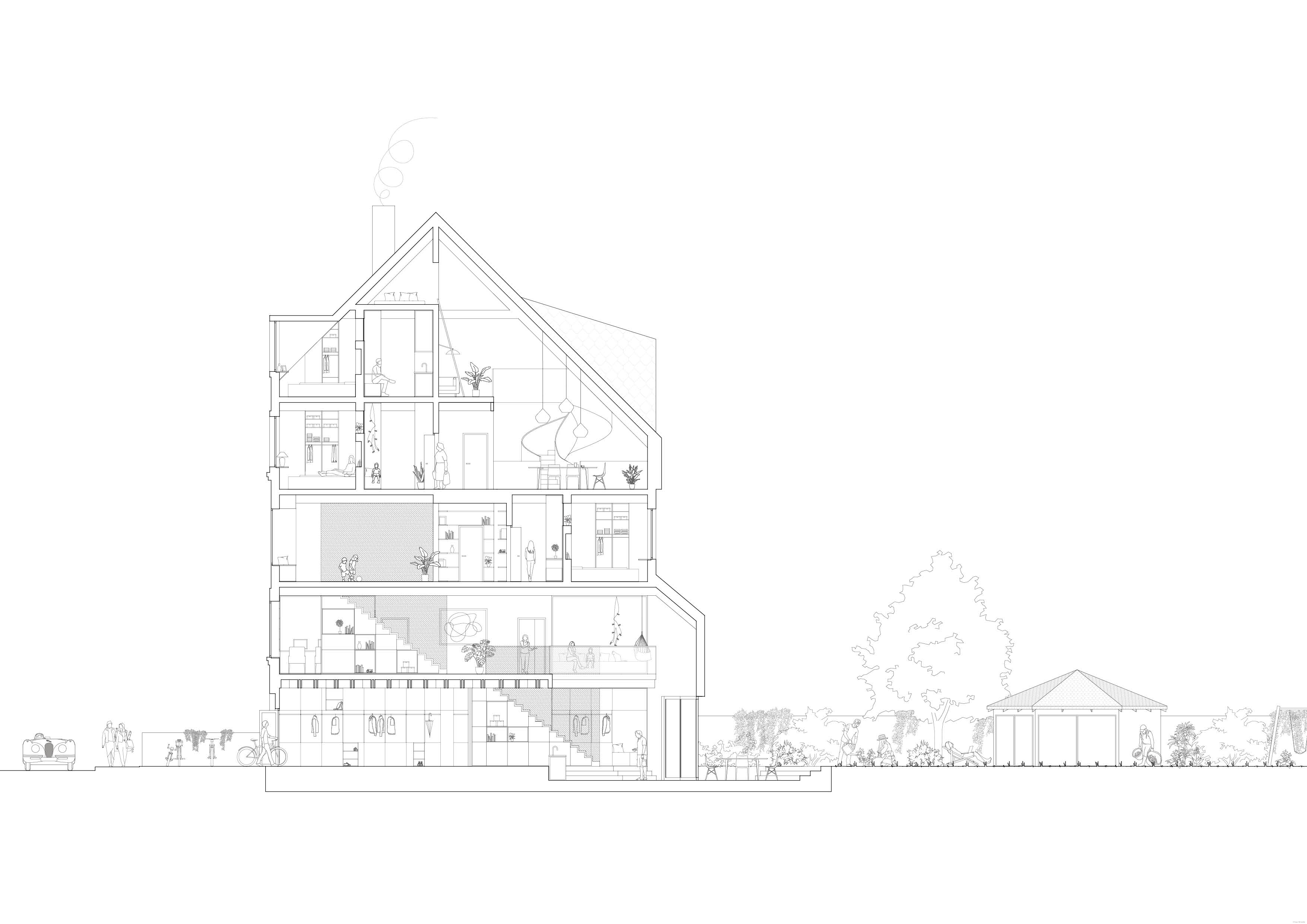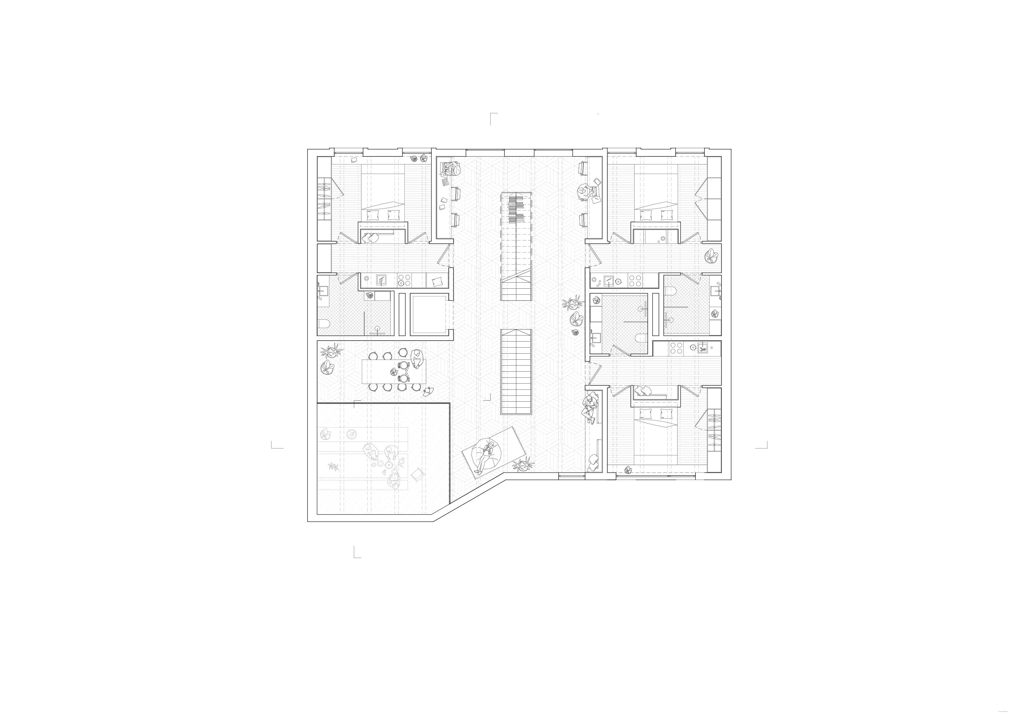 Dieser Entwurf setzt sich mit dem Thema eines ‘EigenArtigen‘ Wohnbaus auseinander. Es werden Möglichkeiten und Unmöglichkeiten von gemeinschaftlichem Leben erarbeitet und am konkreten Beispiel eines Wohnprojektes aufgezeigt. In einer Baulücke im Zentrum von Graz soll ein Wohnhaus entstehen, in der eine Gemeinschaft ein Zuhause findet. Eine Wohngemeinschaft, die einer WG ähnelt aber keine ist, die einem Mehrgenerationenhaus ähnelt aber auch das nicht ist und trotzdem sollen hier alt und jung zusammen leben. Dabei ist ein wichtiger Aspekt die Gemeinschaft so stark wie möglich herauszuarbeiten und für alle Bedürfnisse Raum zu schaffen. Auf fünf Geschossen entsteht eine Struktur, die durch einen großzügigen gemeinschaftlichen Bereich geprägt ist und durch sher klein gehaltene Private Bereiche ergänzt wird. Der Entwurf soll dazu anregen über alternative Wohnformen nachzudenken und die Typologie Wohnung neu zu definieren.
