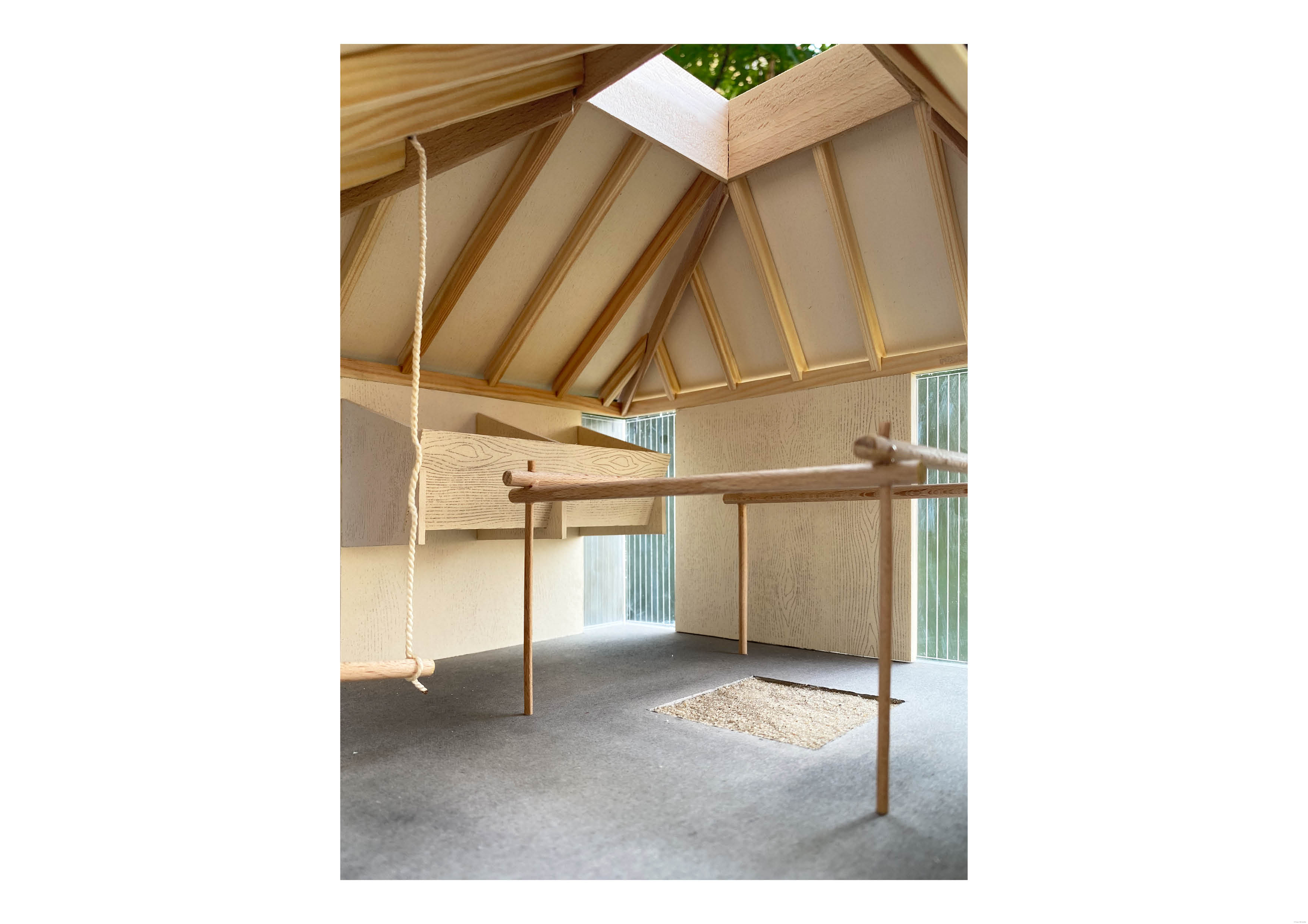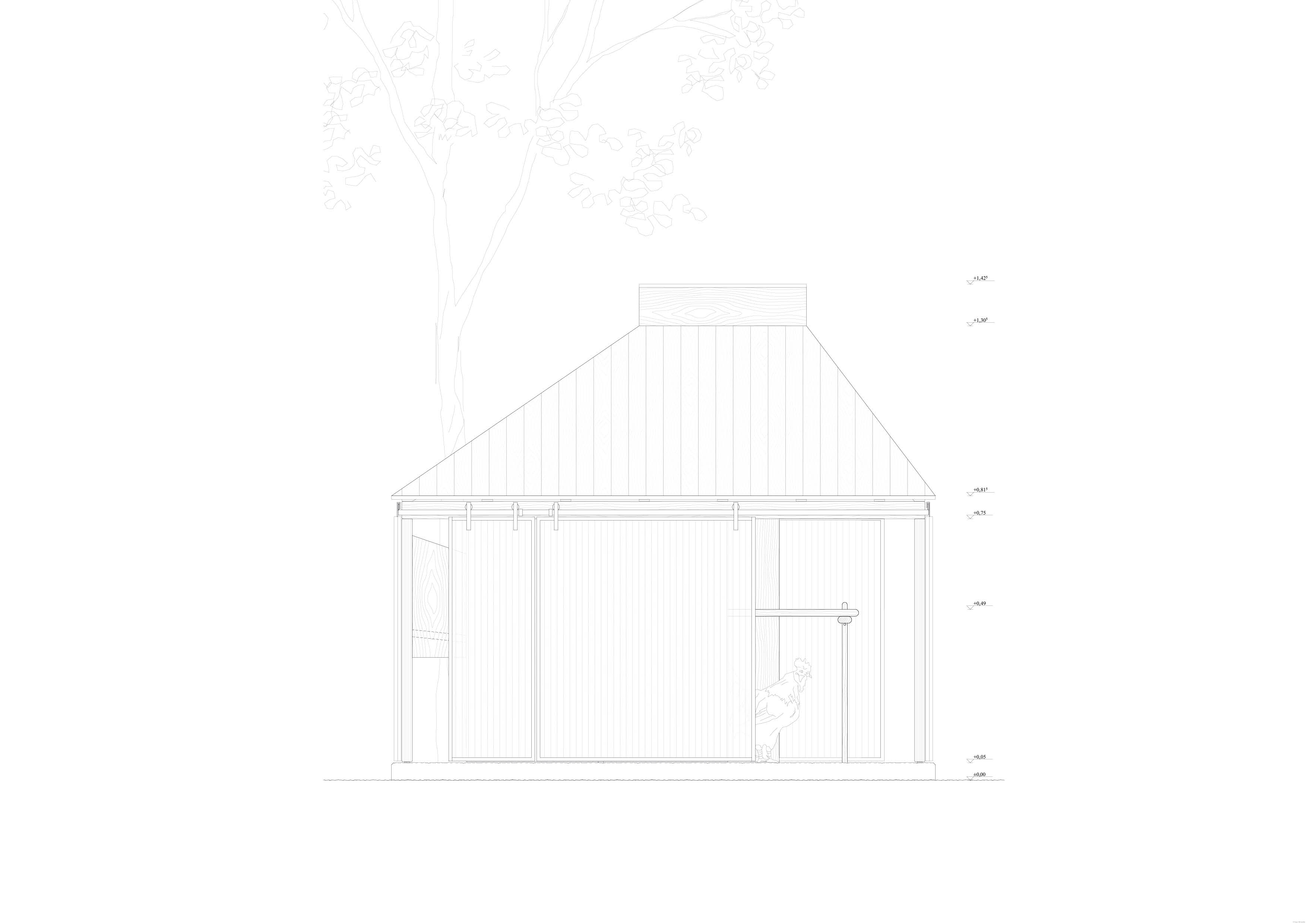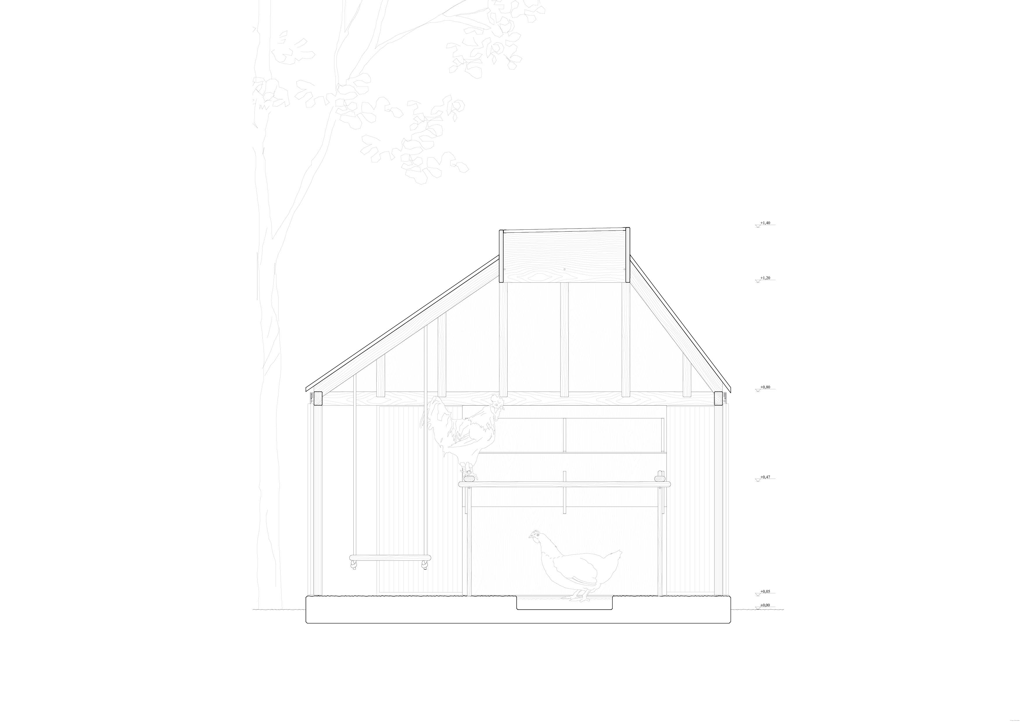 Die erarbeiteten Erkenntnisse werden neu interpretiert und am Konkreten Beispiel eines Hühnerstalls umgesetzt.  Der Entwurf des Hühnerstalls nimmt die Formensprache von Charles W. Moore wieder auf und stellt sie in einem anderen Maßstab dar. Es entsteht eine neue Typologie, die in ihrer Erscheinung deutliche parallelen zum ursprünglichen Orinda House zeigt.